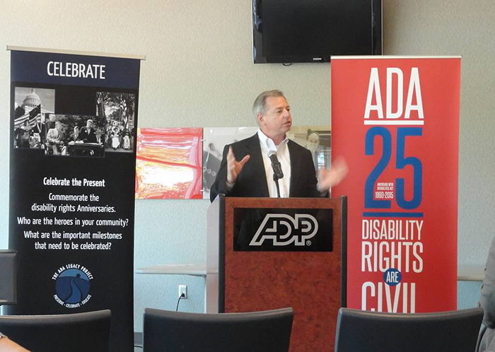 - During the Augusta Tour, we stopped at ADP to recognize them for their inclusive employment initiatives. Tom Olin spoke briefly about his experience advocating for the ADA’s passage.