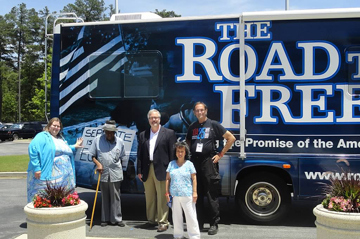 - During our tour of the CSRA, the Road to Freedom Bus and Tom Olin featured in quiet a few local news stories. Tom offered a fountain of knowledge about the events leading up to the passage of the ADA and its history.