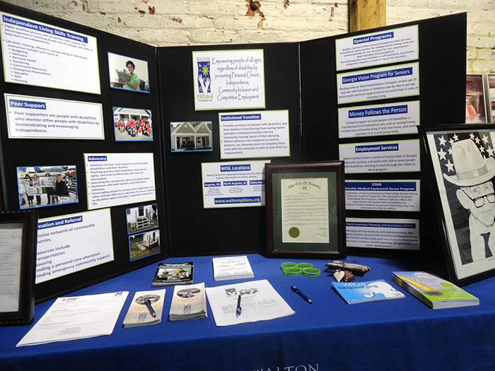 - A table top display with information about all of Walton Options’ different services and programs including photos. There is also t-shirts and memory books from the ADA25 celebrations.