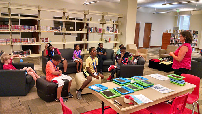 - Digital technology was also highlighted this year, including robots from Tools for Life. This camper is using an iPad to drive a robot around the library.
