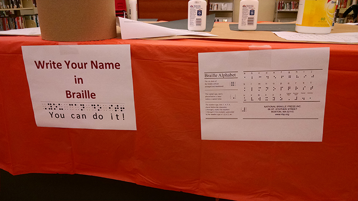 - Different activity stations highlighted different disabilities and different technology that can be used to assist them. This station highlights Braille and how to write your own name.