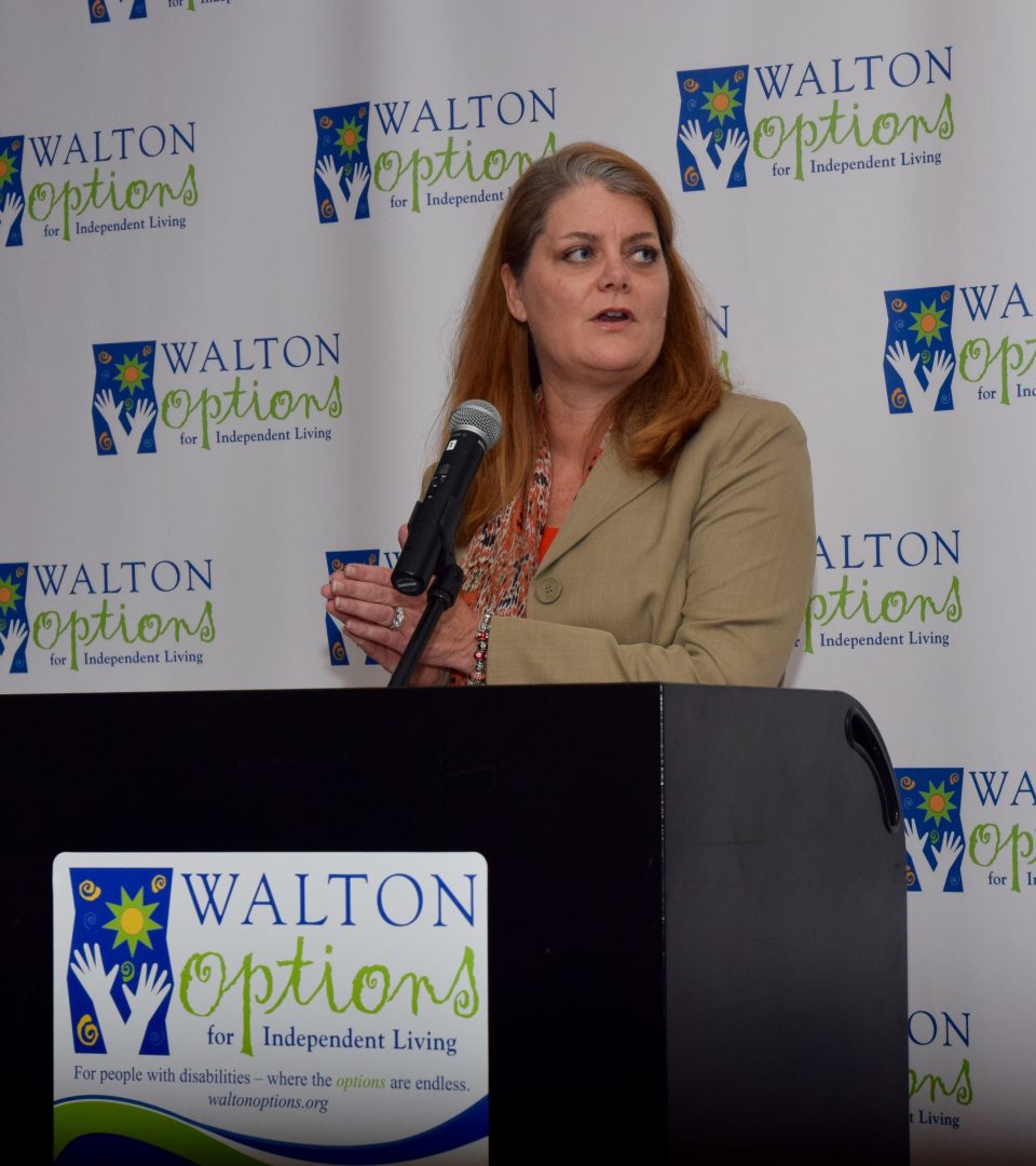 - During the Gala, Walton Options celebrated 20 years of service with a speech from Chair of the Board Beth Morrison and a special recognition for executive director Tiffany Clifford – seen here ready to toast Walton Options’ anniversary.