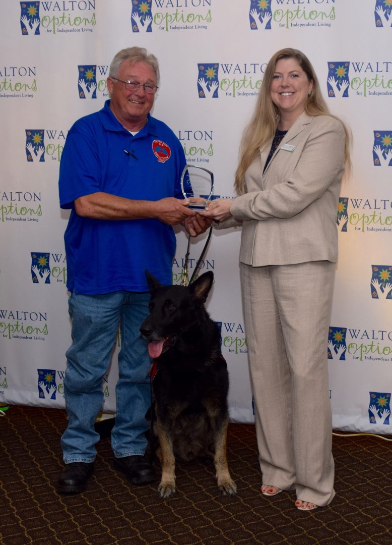 - Veterans K9 Solutions’ representative poses with our SC Director Cyndy Anzek after receiving the Outstanding Service Organization Award.