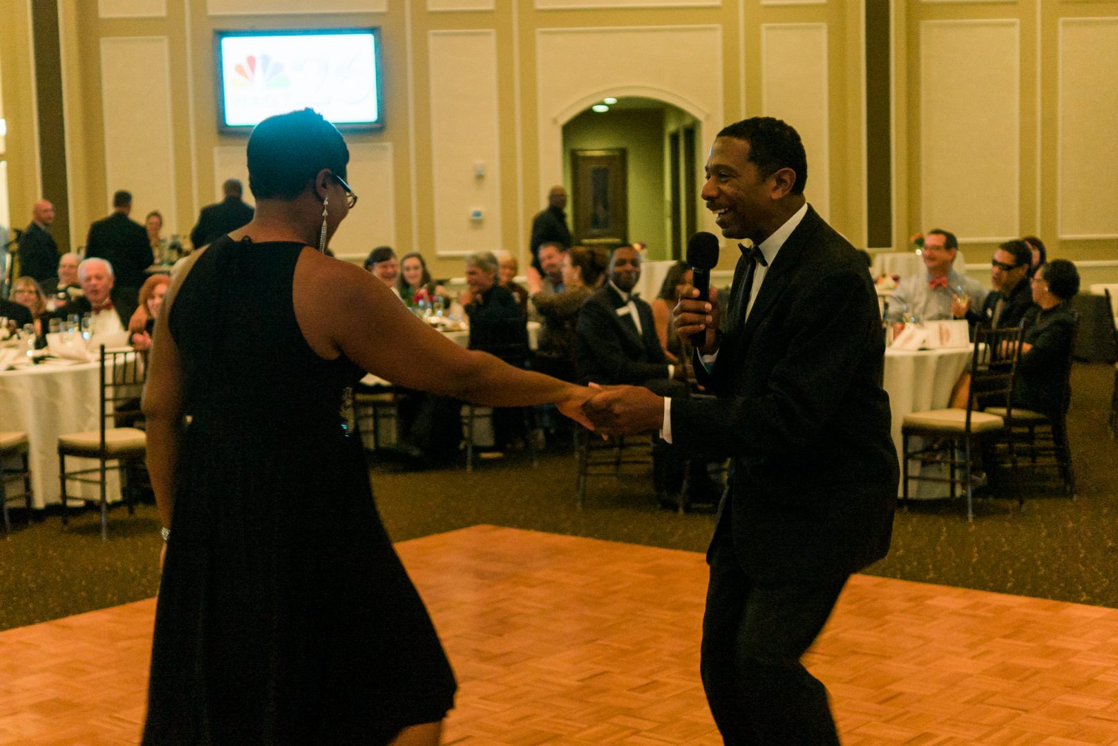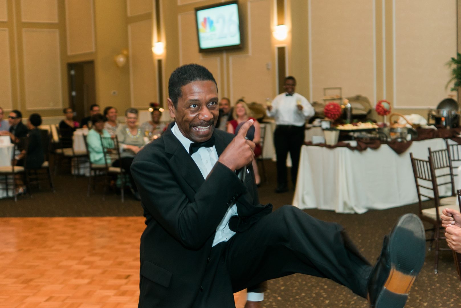 - Guests take to the dance floor to enjoy the DJ and Music. One of the dancers is in a wheelchair.